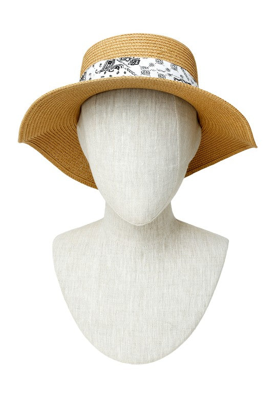 Bandana Wrap Flat Top Straw Hat